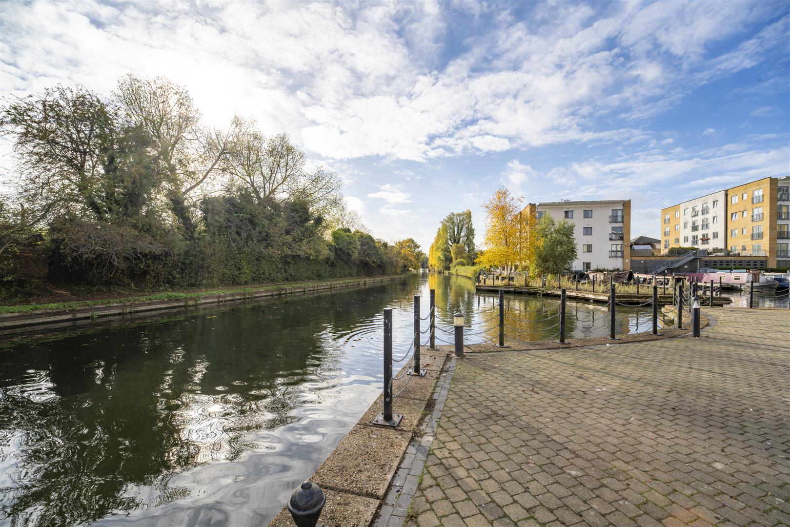 Storage space is plentiful throughout the property, allowing for easy organization and a clutter-free living environment. Double doors from the living room lead to a private patio area, where you can enjoy peaceful moments while taking in the captivating views of the Grand Union Canal Marina.