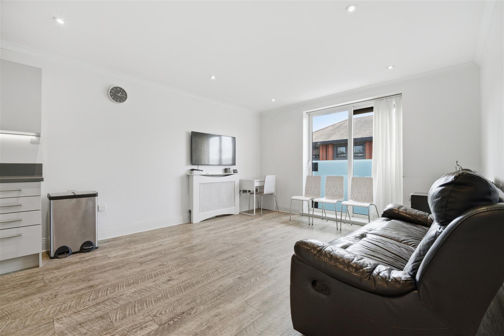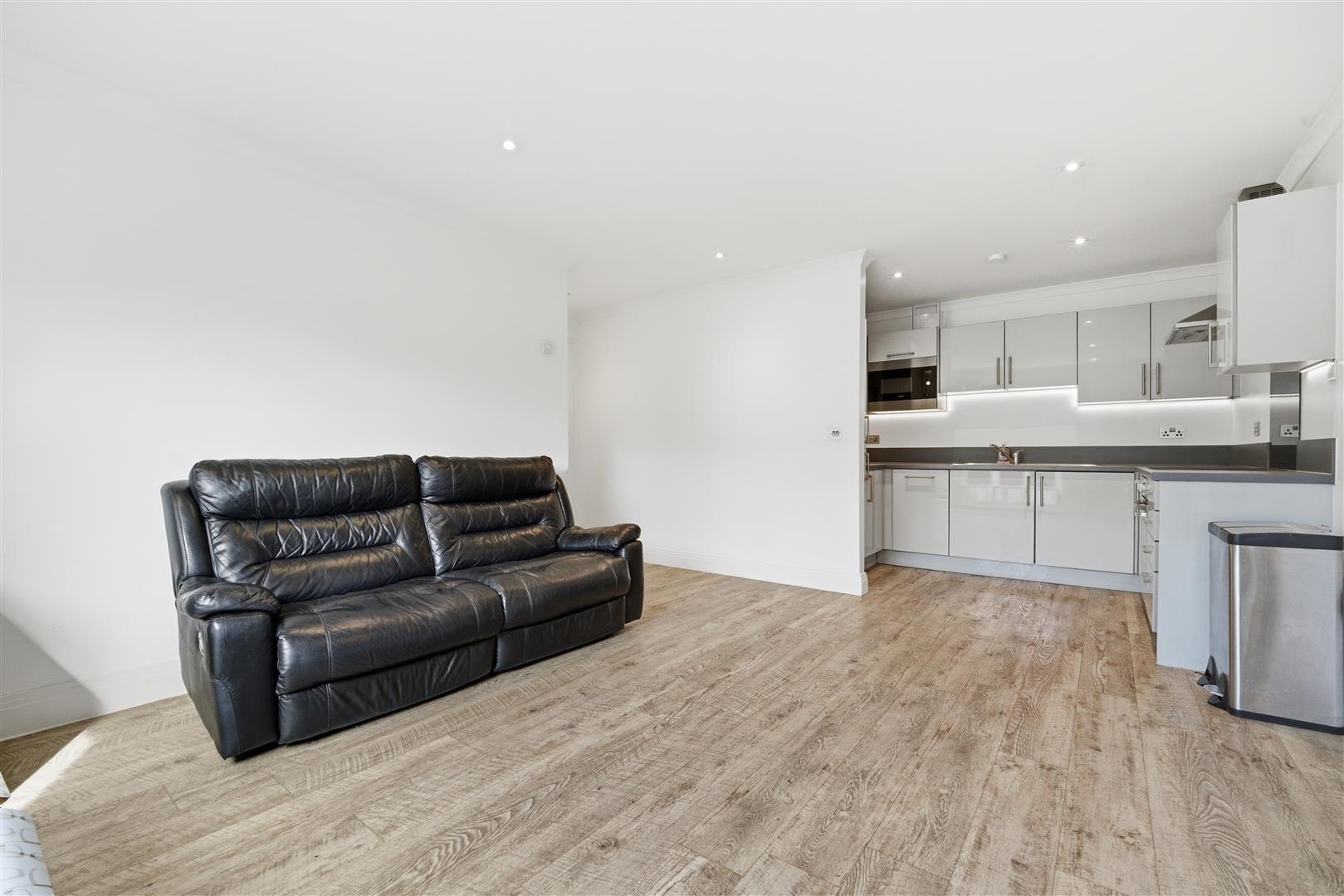 The open-plan kitchen and living area creates a bright and spacious environment, perfect for both relaxing and entertaining. The kitchen is finished in a contemporary style, flowing seamlessly into the reception space. A modern bathroom completes the interior, presented to a good standard, while the property overall is well maintained and ready for immediate occupation. The flat also benefits from allocated parking, adding further convenience.